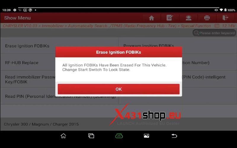 The Pin Unlock Was Successful. Continue to erase all ignition fobiks.