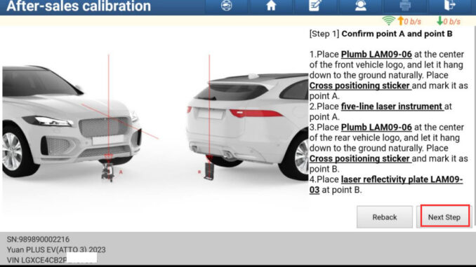 14.Step 2: Connect points A and B with laser, confirm the vehicle center line P, and click [Next Step].